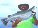 Found some kings in 140 FOW to the NE of Waukegan. Steelies too. 4 for 5. All bites between 8:00 and 9:30. Two on wire dipsey (75 FOC, #2 setting) with a John King Black Mamba meat rig. One on 300ft copper with a mag Green Dolphin Streak, one on a 10 color core with a mag Carmel Dolphin Warrior. Lost a another steelie on one of the board rods . Then the bite quit. Back out this weekend. Looks like west winds for the rest of the week. Salmon fishing on the west side will continue to improve if this turns out to occur. I have openings for this weekend as well as Labor Day weekend. Should be prime time! $375 for up to 4 anglers. Give me a call if you want in on some big kings. 847-420-3046.