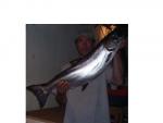 Friday Evening 7/12, was gonna try a little Perch fishing but couldn't get bait after 5pm. so we went salmon fishing. Set up 5:45/55 fow SE of the harbor trolled around some of are old way points 70-95+ fow first hit while still setting lines was on a reg. bl./grn Dolphin spoon on a braided dipsey #2/150 loc but came off after it peeled off a few yards of line. Then nothing for a good hour or so even though we were marking bait and fish 50-90 fow, But the current was strong and I may have been going a little too fast 2.2-2.5 gps , but when the sun set and the lake calm down some and it seamed the current subsided some too. Then the braided dipsey rod #2/70 loc with the reg. NBK spoon shinned for a little while and took 4 hits in a row, first a weird hit and miss tangle with another rod, then a nice 8-9lb. coho, a small king and a another hit and miss. Ended 2 for 5 which was kind of what I expected from the recent reports, nothing on the flasher fly rods? It was a beautiful Friday summer evening to be out on the water. J.J.
