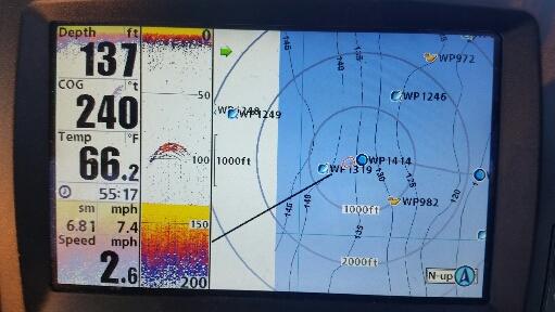 Finally got my boat out for this year. Had a little trouble with a rivet that needed replacement before the boat could go off shore. We launched at 5 and dropped in at 80FOW to set lines. I set a 10 color with a green splatter back plug, a 300 copper with a Deep Thunderstick, 2 wire deeper divers 1 out 240 and the other was out 300 both with Mag spoons. Also set 2 riggers 1 at 90 down and 1 at 110down both with Mag spoons. We headed NW to 160 when the Starboard rigger bounced and after a nice few drag screaming runs put a 15 Lb king in the net. He managed to get around the wire when he saw the boat - that made netting very interesting trying to not have the wire cut him off. Just as the sun disappeared over the horizon we were in 190 FOW, the port rigger was thumping but not released. I popped the release and we netted a 5LB coho with no drama (or hardly a fight). After clearing the fish from the net I tried to wind up the rigger to find the hand crank does nothing. I had to hand wind the cable on the spool from 90 down with a 12 Lb ball on the end. After that we pulled lines and headed in. As soon as we hit the 160FOW, the graph got crazy with bait balls and hooks at 100 down. Ended 2 - 2 with 15LB king an 5 LB Coho. King came on a MS Mag Double Trouble and 'Ho was off a MS Mag Rasberry Carbon 14. New motor ran perfectly and the rivet fix looks like it is good to go for the rest of the season. Happy night on the pond.