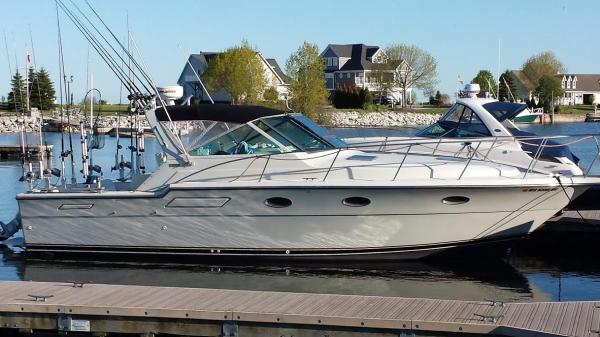 1. 1988 Tiara 3300 Open. Fully rigged for Great Lakes trolling and could be used as a charter boat. This boat is very clean and ready to go fishing now and is slipped in Kewaunee. It has a 30 Hp Honda outboard kicker with full steering and control at the helm. Has Crusader 454's with velvet drives that have about 750 hours on them and run very strong. Has been professionally maintained and boat survey from 4 years ago states boat as ABOVE AVERAGE condition. Drive line was recently balanced with props and shafts scanned and balanced with all bearings and couplings replaced. Has a Humminbird 8 inch GPS/Chart/fishifinder and Raymarine GPS/Chart/Radar and Fishwhawk X4 speed and temp and 22 inch flat screen tv. Sleeps 6 has full stand up shower head, AC/Heat. Galley has stove, fridge microwave in Galley. Has teak and holly hardwood floor in salon and the seating in this area was redone a few years back. Has 4 brand new Magnum Metalz downriggers and rod holders. This boat has the best of everything and is a Tiara which is known to be the best quality fishing boats on the Great Lakes. Here is a link for a video shot aboard the boat. Link with pictures https://greenbay.craigslist.org/boa/5152901809.html