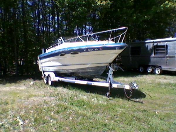 For sale is my well cared for 1988 230 Searay Fishermens Cuddy. Approx. 1100 hours. Winterized and stored inside every winter. 350 merc I/O. EZ Loader trailer with new brakes/hubs and bearings last week($600)