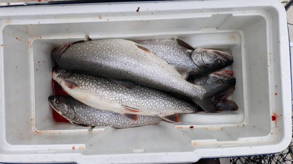 Beautiful night on the Big lake. Started out fast than slowed right down. 3-6. Laker came on the first rod in the water. Maybe 5 minutes into the trip. 80fow. Worked out to 106 when the bigger king hit. Missed a couple fish. Last two hits cam on a double at 100 foot at about 10:45pm. Landed small king and lost a laker. Meat rig on a dippsy and riggers went tonight. Nothing came off of coppers.