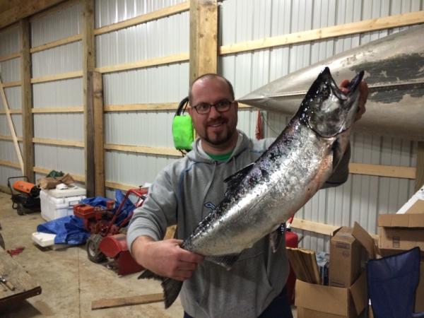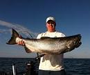 Went 4 for 5. Started in 100fow at 5pm did loops between 100 and 80. Had a hug rip on a dipsy set on two, 80 feet back with a white spin doctor and a white/glow homemade fly. Soon after caught a small laker on a tin can with a homemade green fly and spinnie. Then caught an 8lb laker on a full core with a flounder pounder glow. 10 minutes later caught a 10lb King in the same full core. Decided to leave the deep water and hit the plume just before sunset and caught a nice Coho on a 5 color with a small white glow spoon.