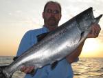 We set up shop in 180 fow and trolled out from there. Steady pickins of fat coho from flat lines, 2 fish, 125 copper, 2 fish. By far, the best rigs were the wire divers, f/f combo's going 4/7 including big fish of the day, an 11lb. laker that was released after pic's. These were best @ 139 and 159' out set on 1.5 and no ring. We stayed between 180 and 230 fow. Just an awesome day on the water with my son for the first time since losing his mother [and my wife for 30 years] back in March. So thankful to see him smile again. I'll get the pic's loaded soon. Dave