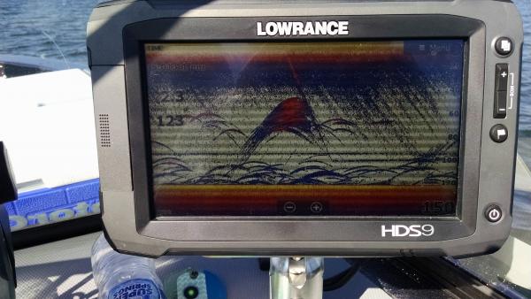 A lot depends on the settings on the Lowrance but from what I see on your pics of the screens, I don't think that many of the marks are salmon or trout. My guess would be whitefish -- especially those near bottom. Salmon and trout will generally have thicker marks in the middle with black on top and yellow or red in the "body" of the arch. The uniformity of the arches indicate that the fish are not very active either -- moving/active fish usually will have arches that are more skewed to one side with partial arches. The suspended marks in the upper right side of picture 2 are probably salmon or trout. The other uniform "upside down V or U" ones are more typical of stationary or slow moving fish that are passing fully through the beam of the fishfinder.