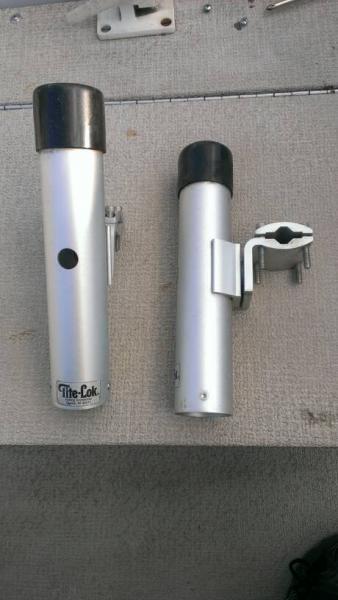 I haven't used these but only a few times, now that I have an arch on the boat they are obsolete. They mount on a 7/8-1 1/4" rail I believe(like a bow rail or a pontoon rail) and have the heavier duty four bolt clamps. Perfect condition. $50 to your door. Sent from my HTC One X using Great Lakes Fisherman mobile app