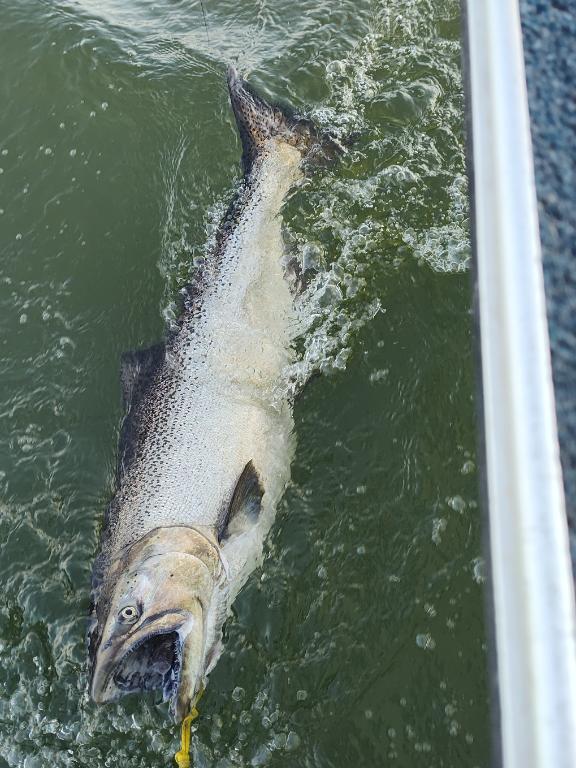 7. Ran back to Pt Betsie and set up in 80. Hit 2 kings right at 9:30. Lost the bigger one right behind the boat. Ended the day 5/8. Long day on the water, but amazing scenery and great weather.