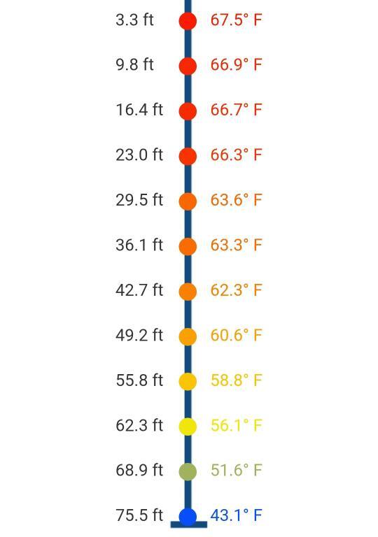 13. We tried that in Saugatuck for an hour with nothing. Then we switched up and trailered to Grand Haven. Ended up 5/7 in Grand Haven. 4 kings and a coho. All kings cought in 45 fow on plugs in front of the piers. One hour of chaos from 8 to 9 pm.