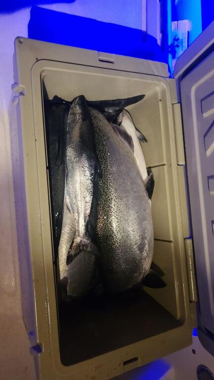 6/10 now 1. 250 copper agent orange moonshine 2. Diver back 125 meat rig 3. Diver back 125 meat rig 4. 300 copper double trouble 5. Diver back 125 blue jeans flasher fly 6. Diver back 125 blue jeans flasher fly 7. Diver back 125 blue jeans flasher fly 8. Downrigger 75 white dragon slayer flasher fly 9. Diver back 125 meat rig 10. 250 copper agent orange 11. Diver back 115 meat rig. -