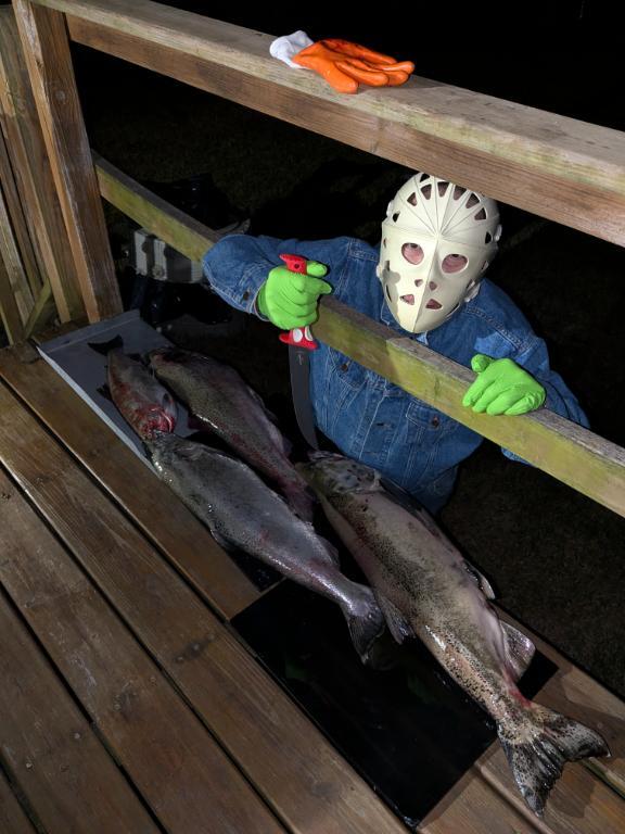 9. went on metal boat with 15yr old son this Thursday night off Holland. Lots of fish marking on the Garmin. We knew kings were in there because of the lunker he had gotten alone on rowboat in the morning. Lots of sheephead. 3 color had a king on mag moonshine greenjeans but she came off. Then the other 3 color with size3 mongoose starts screaming 20min after sunset. Not a king but instead a monster steelhead! Jumped 10 times. Anyways, didn't have to clean fish tonight because it was master angler and so beautiful that PUG voted we get it mounted 20250925_195303_1.mp4