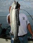 Fished this morning 5 AM to 11:30. Probably should have gotten out a little sooner, as the early bite was strong but died down considerably after 8 AM. Started at 120', then trolled out to 220 and back in to 100, with the best action occuring at around 180. Ended up going 10 for 16, with 4 kings and 6 cohos. Not much for size, with an 8lb king being the biggest. Riggers and downriggers worked well, but couldn't get much going on leadcore or copper for some reason. Line score in no particular order: 1 for 3, Mag Raider Grey Beard, wire dipsey 50 LOC :GreyBeard: 1 for 1, MT Dew E-chip flasher w/ powder blue fly, wire dipsey 2 for 2, White/Blue glow Opti Inticer w/ 4K Bloody Nose fly, downrigger 83' 2 for 4, red 00 dodger w/ green 4K peanut fly, slide diver 1 for 1, Std Raider Flamethrower, slide diver :Flamethrower: 0 for 1, Mag Raider Roadkill, slide diver 0 for 1, Std Raider Lemon Ice, downrigger (stacker) 52' 1 for 1, Mag Raider Sister Sledge, SWR 7' (hit while setting the stacker) 1 for 1, Std Raider Jim Jones, downrigger 105' 1 for 1, Std Raider Antifreeze (prototype), half core