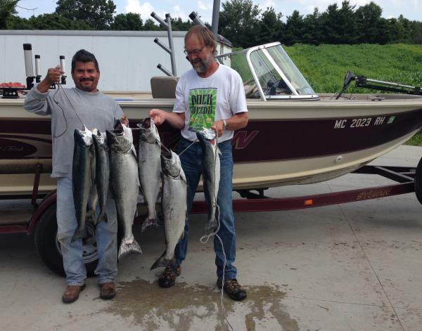 Two of us fished this morning till 10:30am, ended 4 for 4. Caught 3 four year old Salmon, biggest was 16#. One Steelhead--6# Total catch was 43#.