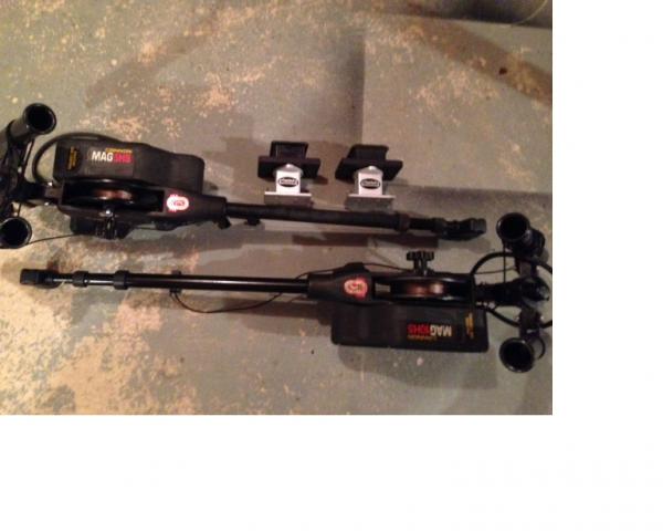 One Mag 5 HS converted to a Mag 10 with adjustable boom, dual rod holders, and 3 " traxstech swivel base.