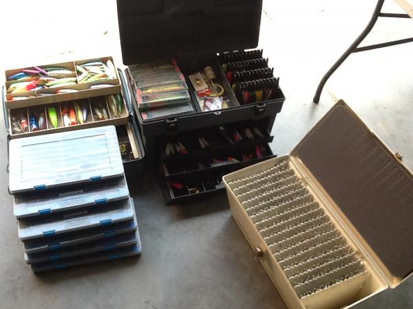 Over 200 stick baits. Rapalas, smitwicks and thunder sticks. Assorted J plugs. Over 350 spoons. Nk-28 regular and mags, alpena diamonds, flutter spoons and more. All lures are in great condition ready to fish. Approximate value over $2500.00. Asking $1250.00. Includes tackle boxes. Will ship. Will accept pay pal. I can e mail more pics