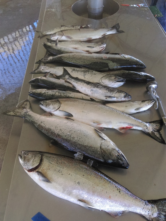 SoHa 5 14 5 for 5, 7lb king. 2 small coho n 2 king dinks. 120-140 fow, riggers 3 hits down 63, 57 main lines n 1slider on 59' main. Jagger bombs, n mixed veggies. 1 coho 3 colors on jagger bomb. 225 copper 1 dink. Mixed veggie.