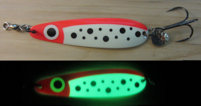 Hi JDH, one more thought, from your spoon pic w/ the ladderbacks, fluorescent,non UV, shows up very bright under blacklight - was wondering what this would look like down deep (what the salmon see?) Does anyone remember running fluorescent painted spoons before UV was available? sounds like a fun field testing challenge -