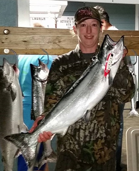 "Still getting clean kings!!! GL-Tackle red headhunter spoon and fireflies jellyfish still catching." "Team meals on reels getting on the kings while setting lines!!! Here is my sister with a nice king taken on a GL-Tackle zombie apocalypse." FireFlies Aint No Joke Productions Thanks again Nick! Awesome catch! Tom S. - FishKnocker - GL-Tackle.com (pike pic from Eagle Lake, Ontario - were field testing, this spoon outfished our daredevils & husky jerks 6:1 - Joey caught (10) pike or so)