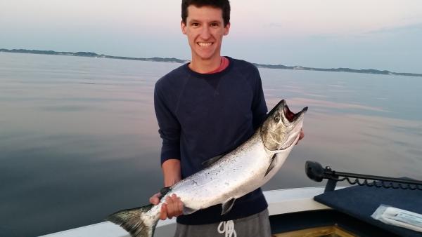Got on the water at 2 headed north in 35-40 FOW. No dice. Headed back south in 30fow. hooked up on the down rigger, purple flasher white moonshine spoon, about 200yards north from the pier. then another hook up same rod, right out in front the the pier. Then trottle cable broke and ended the day. First fish was 5lb second was a 2lb either browns or steelhead. what are the tell tales between the two? Real bummer that we had a breakdown right as we were getting into the fish.