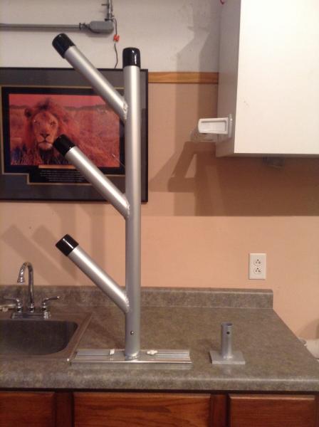 3. This new Custom rod holder tree, holds 3 rods of any length with an additional rod or net on the top. One can use the rod holders for dipsy, board, or downrigger rods. These rod trees swivel 360º and lock in four 90º positions. These swivel rod trees can be mounted in a track system or on the gunwale of your boat with the additional base mount which is included. The rod holders are constructed of clear anodized aluminum. $125 shipped. Paypal preferred!