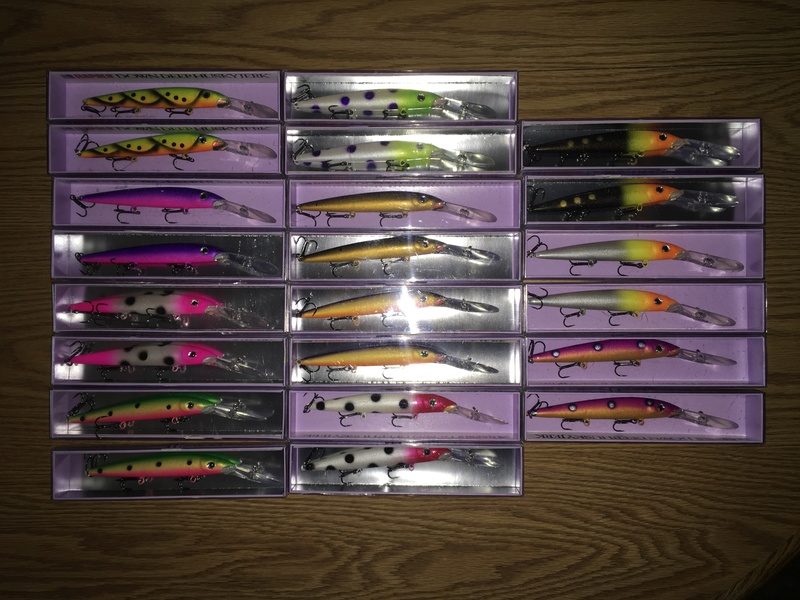 sold / closed Lot of 22 custom painted Rapala deep husky jerks, dhj12s