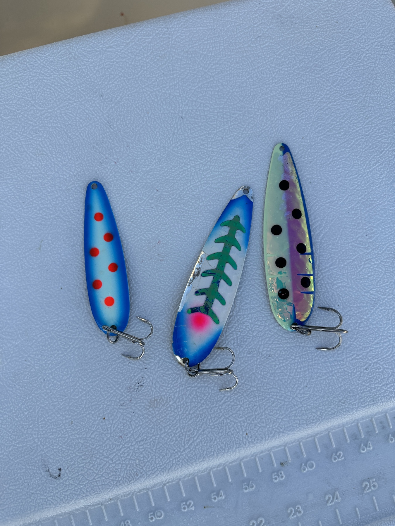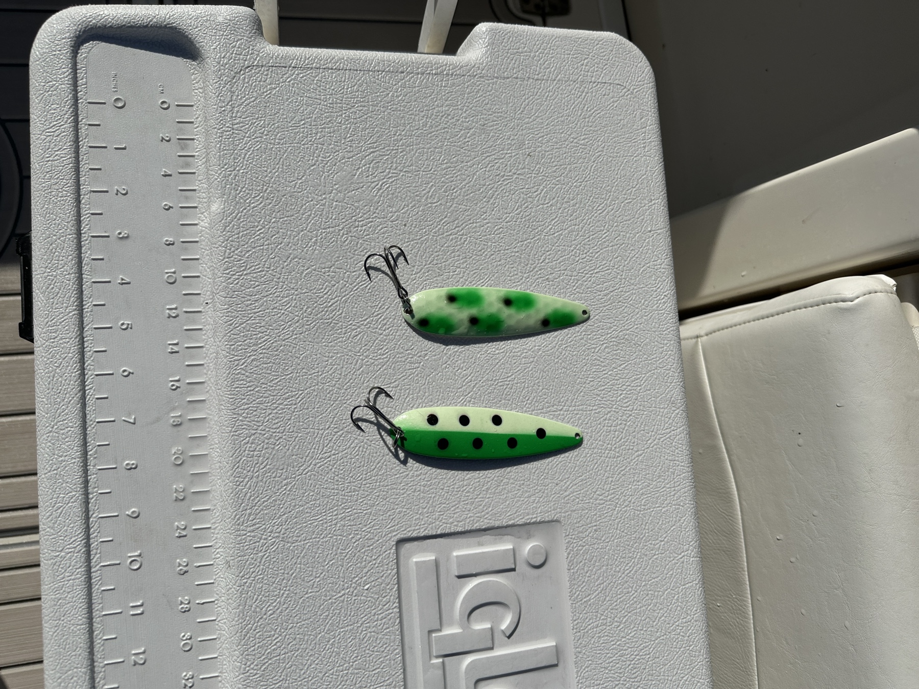 Fished 6:45 to 10:30 and went 2 for 3: - 12 lb King on a 7 color with coyote blue dolphin in 131 FOW - lost a nice Coho at the boat in 151 FOW on a green slide diver with a small mtn dew paddle and green/white fly back 100 - 10 lb Steelhead on 5 color in 150 FOW on a spoon similar to a DW Monkey Puke. Lots of rollers this morning on the lake.... Sent from my iPad using Great Lakes Fisherman Mobile App