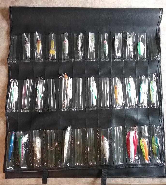 Handmade custom fishing lure bag, made in various sizes with marine vinyl and clear vinyl. Sizes start at 12 pocket. Bags can accommodate all size lures, from crank baits, spoons, jerk baits, spinner baits, even big muskie and pike lures. Shipping is available and payment by pay pal or e-transfer make ordering easy. Call 519-281-2778 or email at