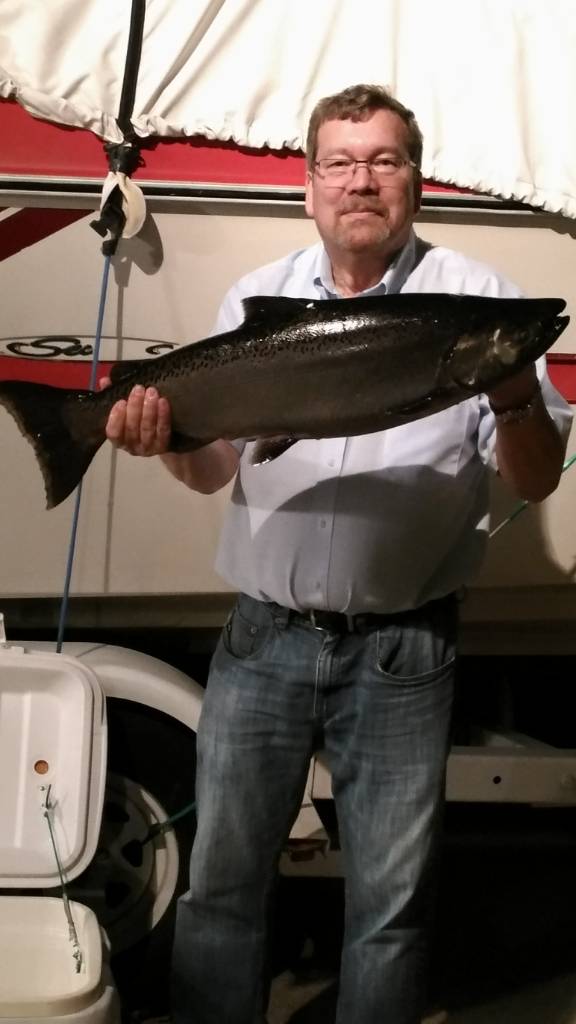 2. Fished with my buddy Steve after work set lines about 6:40 went 2 for 2. One 14.4 lbs king on downrigger 50 down watermelon spoon, 100 FOW. One small shaker on 200 copper released to get bigger, I hope. Sent from my ASUS_A006 using Great Lakes Fisherman Mobile App