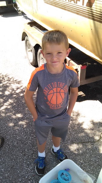 I haven't fished near as much as in the past. We have experienced more NE winds this year than I can ever remember. NE is nothing but bad for fishing the W shore of the Saginaw Bay. Even mild NE winds can be detrimental. We have never before been able to put over 30 fish in the box with the old limits of 5 walleye in combination with pike, bass, and flathead cats. We have had 30 fish boxes with six people onboard but most of the time our crew is at 4 people, but that was the past. I'm not sure I agree with the DNRs decision to decrease the size of the walleye to 13" and increase the take to 8. I'm keeping an open mind and time will tell how this will play out. The DNR are the experts and have did well with this Saginaw Bay Fishery in conjunction with some private walleye clubs. The Bay has been self sustaining for years. Hats off to the Saginaw Bay clubs and DNR for their work in getting things to this point. With the new limits on the bay we have exceeded some of our past year's fish boxes. About a week ago we were blessed to have two back to back limit days out by the Big Charity Island. Mon July 25 we boxed 32 VN eyes, most being over 20". Tue July 26 we returned with our goal set at 32. This time however we had a special 6yo onboard and was able to ice 40 walleye most being over 18". Now it takes awhile to put 40 fish in the box but Matt reeled in all the walleye his little arms could handle. Matt hung in like a trooper only getting antsy the last hr. Our largest fish for the two days were around 25" We ran 3oz bottom bouncers off the longline down rods and 2oz off the board rods. We did sacrifice some hardware in the rocky conditions around the Charity Islands. We ran the deep lines by hitting bottom and then bring the bouncers up a few feet. We also ran some bouncers higher in the water with our Offshore boards and they produced some nice fish also. Probably our best combo was a #4 fire tiger blade on a two hook harness on the down rods. Purple, antifreeze, and a glow green chartreuse all worked well. The action at the Islands can be hit and miss and requires a long boat ride to get out there. Thanks to Joe B, Chuck A, Don M, Matt, Karl M, Mike T, and Skip S, for the great team work on these two trips.