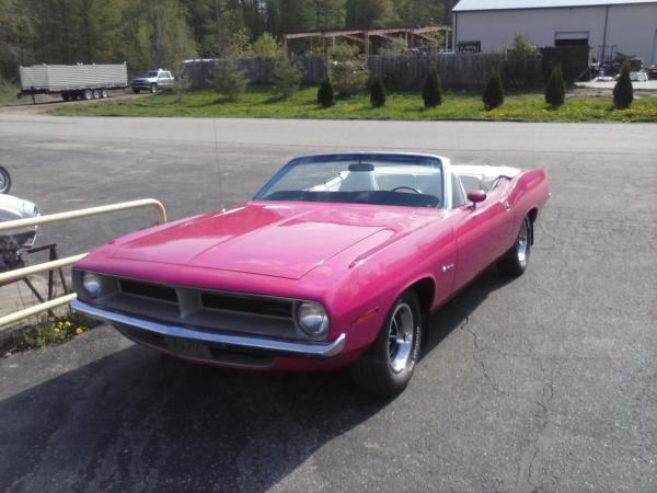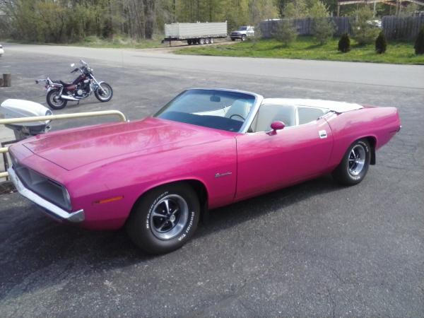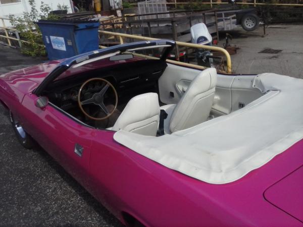 Next,... from today 5/7/15 is a MOPAR! This was at one of my stops, the good guys out at More Power Inc. in Sparta. The owner is a airline pilot and from what he told me he has a stable of badd arse Mopars. Hemi's, 440 6bbl's, and this 1970 "Panther Pink" 318 'Cuda conv. It's actually his wife's car. It's been repainted more of a "girly" pink because she didn't like the original shade of pink the factory used. This car is really rare not only because of the color, but this drop top even has AC !!