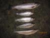 Fished north of channel 5:30-9:00 went 5 for 5, 4-16 fow 2 browns, 2 steelhead, and 1 laker. 1 brown and small steelhead on red spoon with black spots not sure brand, 1 brown, and laker on gold thin fin and other steelhead on orange thin fin. spoon was with 2 color lead core, all others 65 back, on boards.