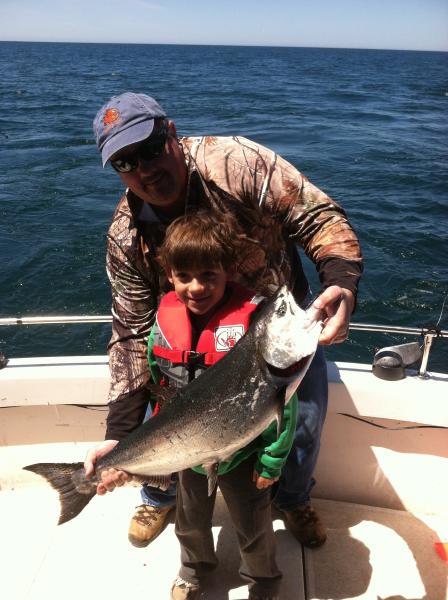 martemucci Posted May 27, 2014 Posted May 27, 2014 Our youngest fisherman. Poor fishing in 45 - 75. Moved out to 90 and hit em. 10 - 14 with three 16 lb. Kings. NW troll. Most fish came on lead and copper. Mag spoons of several colors. Greens, purple. Young Lucas hauled in several including this nice 16 lb King. All our fish came after 12 pm.