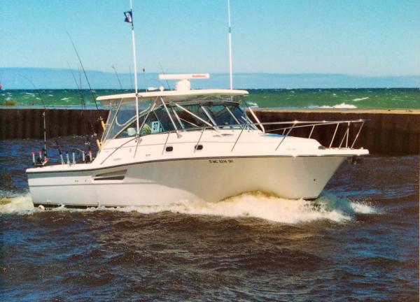 stan Posted June 10, 2014 Posted June 10, 2014 Pursuit 3400 Express purchased new in 2002. Only 1250 hrs. NOT a charter boat Always a Lake Michigan freshwater boat. Twin 8.1 liter Crusaders -- 385 hp each, with Trolling Valves. Full Raytheon electronics package including Radar, Chart-plotter,Fish-finder with DSM 250 enhanced sonar,Auto pilot,DGPS and marine radio. Hardtop with full canvas enclosure. Great Lakes Fishing Package. Excellent condition --professionally maintained. Inside heated storage each winter. Great fishing and cruising boat. $145000. Located in South Haven, Michigan. Contact Stan-- on this site