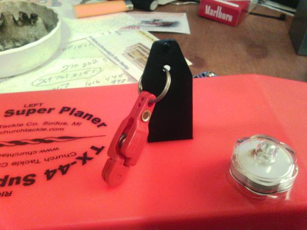 1mainiac Posted September 3, 2014 Posted September 3, 2014 I made some changes to my TX44 boards this year and I like the improvements. I have fished them in a variety of conditions and they worked well. So here you go I am calling this project done and you can have the results. 1st remove the front release and discard it replace with a OR16 and split ring. 2nd on the bottom edge draw a line between the screws that hold the front and rear weight. Measure from the back of the board 6 and 3/8 in and mark the line there. Then mark 3 spots in front of that mark and 3 spots behind it 3/8 of a in apart. Drill each mark out with a 1/16 bit. Now either trim the foam or just jam both weights on top of each other so the center screw hole lines up with the center hole in the 7 holes you just drilled. You now have a very neutral board that will track very well and pulls in nicely. And tows a 300 copper like it is not there for a 450 move the weights ahead one hole if you want but it will track a 450 pretty good without changing it. For a 600 move one or 2 holes forward I use one but you might like 2 better. The OR16 with split ring adds about 3/4 in to the overall arm length for the release which makes it dig better and run much wider. On a calm day your board will actually run along side the boat up to 50ft off to the side not behind it at a angle.