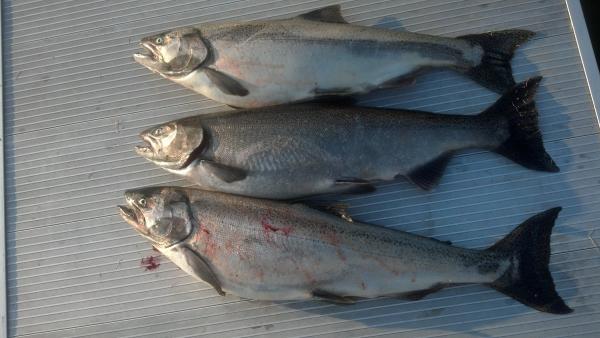 2MD Posted September 19, 2014 Posted September 19, 2014 fished holland harbor again today with the kids - was a blast - finally a warm day too went 3 for 3 on kings - all rather silver yet - all females that fought like the dickens jumping all over it took us a while to find out where they were hiding - nothing in the channel or mac - they were north of the pier directly off the ottawa beach pavillion deal in that 'hole' that exists there where depth drops from 32 feet to 40 feet. took a double on riggers 7 down 80 back green ladder and chrome red head at 11am and got both then a couple hours later nabbed one out of there on orange board with drop weight and fickle pickle jplug what i cant figure out is how last friday i boated 10 really dark males in the channel and now we are getting silver hens in the open water - i think that the late april ice pack threw the kings off and is making this run very unusual with a lot of fish thinking it is still august did not see anyone else off holland or on the piers catch fish today
