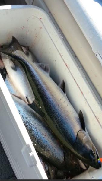 young gun Posted May 24, 2015 Posted May 24, 2015 Friday night: 4-6 with chandler. Mud to 110fow is where we caught out fish. Saturday moring: 11-11 two man limit by 9:30 had to let go a shaker. Fished 25-65fow. Riggers 28 and 19 down. 5 color, 2, and 3 colors were hot. Saturday: charter with desprado. 6-11 big kings 45-65fow 10 color wonderbread hot. Lost our whole rig when big king almost spooled us! Riggers with yellow and mix veggie spoons. Great weekend of fishing!! Lots of 12-17 lbers!! A 5lb brown in the mud too.