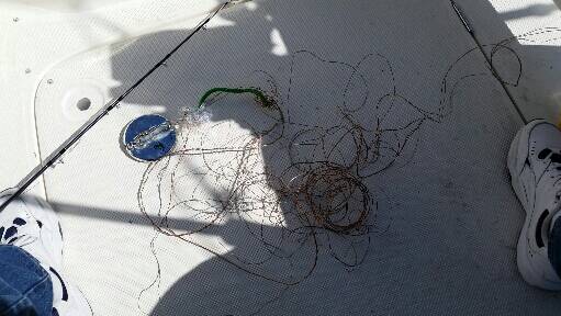 littleboat Posted June 19, 2015 Posted June 19, 2015 (edited) Fished 9am-1:20pm 2 for 2, kings in 120 and 130 fow. 3# and 4#. 1st on 300 32# copper, sog 2.8, sw troll with blue bones spoon. 2nd one on se troll, sog 2.1, braided diver set on 3, 120bk w/ meat rig grn/white/dots. The 1st caused quite a tangle up between a 45# 250 cu, 32# 300 cu and wire diver. Surprised me, because I thought it would have been a much bigger fish. . I had to do some wire cutting to keep the fishing going. 3 ft waves at the time about 6.5 miles off shore. We were out to 200 but started in 80fow. Edited June 20, 2015 by littleboat remove extra picture