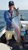 The lake did a hand stand in the last 12 hours. Water temp out at 90 feet is 49 degrees on the surface. Got this 15# king 100' back on a standard wire diver set @ 1.5. White/pearl spin doctor paired with a big weenie proctologist fly. Only bite of the night... Waves we're big..hard to keep a steady speed.