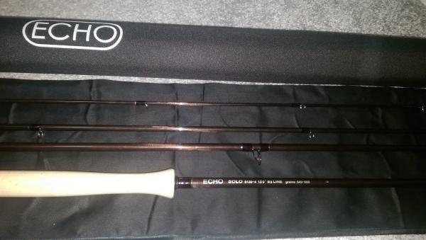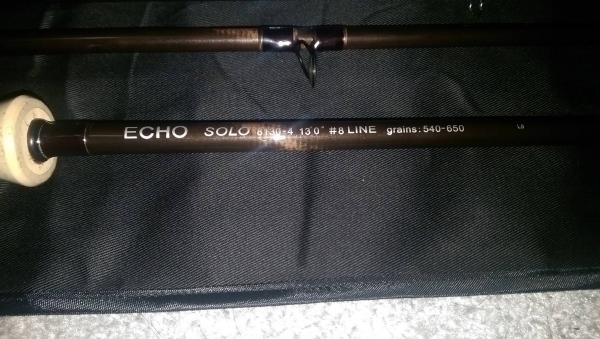 mbistoff Posted August 17, 2015 Posted August 17, 2015 Echo Solo Fly Rod 8130-4, 8wt 13ft 4pc ECHO Classic Two-Hand rods are the smoothest, easiest casting rods in their class. Whether looking for your first two-handed rod or a great backup, the ECHO Classic Two-Hand rods are the smoothest, easiest casting rods in their class. High grade components and our Classic Deep Emerald blank color mean these rods look as good as they fish. They have a crisp action and modest power, allowing performance over the largest range of fishing conditions, using both floating and sink-tip lines. The six and seven weight models are great for Summer Steelhead and Atlantic salmon. The eight weight is a powerful rod, great for larger rivers and heavier sink-tips and longer bellied lines. We took our time on the ECHO Classic Two Hand rods because we know that if you are satisfied with your first ECHO rod you will think about us when you’re in the market of another rod. Heck you might even tell your friends about us. Features: Four piece travel design Alignment dots for quick assembly Anodized aluminum reel seat Deep emerald gloss blank Emerald green wraps with metallic silver trim High grade cork handle and fighting butt Ceramic stripping guides Hard chrome snake guides and tip top Cordura covered rod tube and cloth rod sock ECHO lifetime warranty Rod Specs: Length: 13' Line: 8 Sections: 4 Local fishing store went out of business, unused, in original packaging.