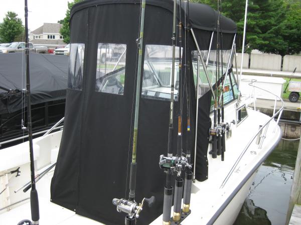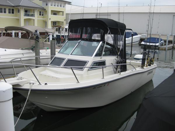 mully1957 Posted August 25, 2015 Posted August 25, 2015 This is a solid boat with a true 22 ½ length not including the bow pulpit and outboard motor bracket. The bracket allows for a full transom across the rear of the boat (no motor well to take up cockpit room). Together with an 8' beam, a kicker motor, rod holders and down riggers this boat is a great layout for fishing. The main motor is a 1996 Evinrude 225 horse 2-cycle completely rebuilt this spring. The kicker motor is a 2013 Mercury 15 horse four stroke with less than 20 hours. Both motors run straight gas from the 90 gallon in-hull gas tank. The main motor has a 1.3 gallon oil tank and automatic oil injection. The fiberglass hull is well built: this boat weighs 2,900 pounds dry with no motors installed. There are 2 large storage boxes under the cockpit seats. The cabin converts to a fully padded v-berth and can sleep 2 (cozy). There are three storage lockers under the V's. The canvas enclosure is tall with a full length drop curtain and was new in 2014. Other features (rods and baits not included): In deck live well Anchor roller on bow pulpit with storage locker for anchor rode Two newer batteries with battery switch 2 axle trailer with hydraulic brakes, newer coupler, winch, tongue jack and a good spare 2 Big Jon manual down riggers with swivel bases 2 Vector triple rod holder with adjustable tilt 2 Big Jon heavy duty dipsy rod holders 2 rail mount rod holders for nets 6 rod holders on side of the cabin for extra rod storage 2 bilge pumps Storage compartment in transom Glove box Navigation lights Porta-potty Fire extinguisher Screened sliding windows and headliner in cabin GPS/fish finder Newer ship to shore radio with antenna Trim tabs Compass Water flow gauge for main motor $17,500 616-283-1147