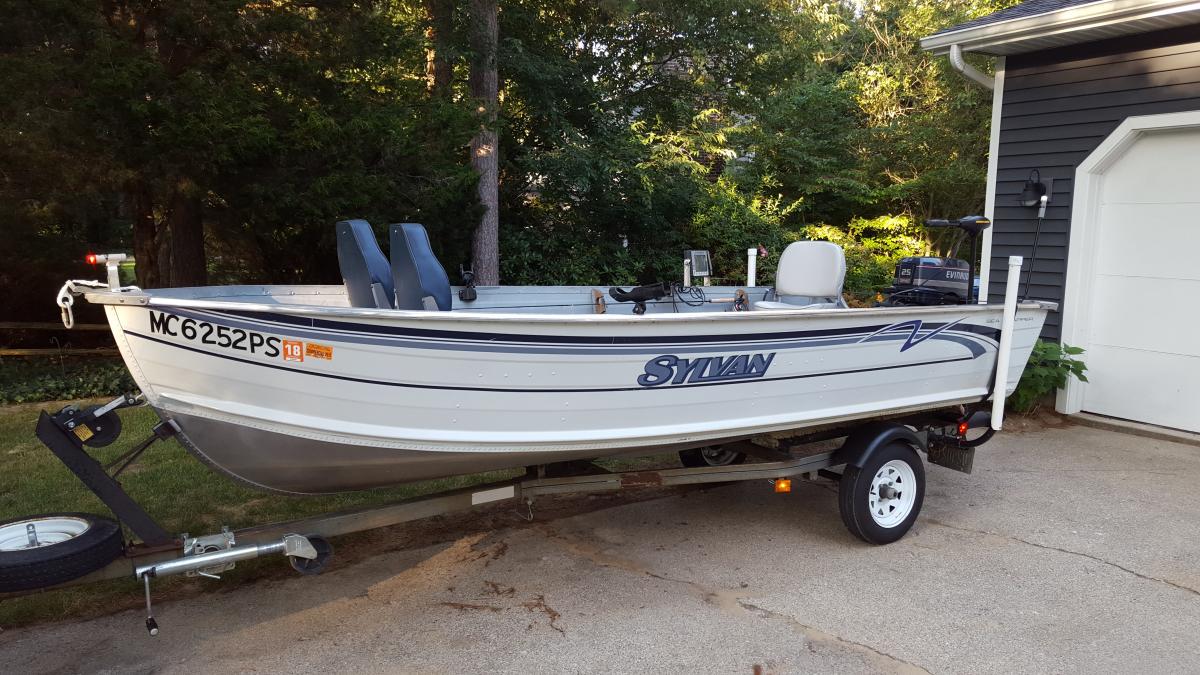 marshflies Posted January 25, 2016 Posted January 25, 2016 1996 14' Sylvan Deep V Fishing Boat Awesome Running 25hp Evinrude with dolphin planer fins, Thing starts by barely touching the start button. 37mph. Boat has easy removable floors with carpet throughout. three movable seats, front anchor system with auto rope locking. 100ft anchor rope, led navigation lights front and rear, minnkota 50 5 speed electric trolling motor, brand new deep cell trolling battery, new boat battery, easy loading trailer with guide poles, brand new led lights and wiring from plug to lights. new trailer tires and wheels, bearing buddy's, with new spare tire, and trailer jack for easy roll around mobility. two rod holders for trolling, built in rod storage holders, and a bottom line tbl 300 fish graph. newer boat cover. Boat is in very good shape and no leaks what so ever. perfect walleye trolling boat. $5,500.00 [email protected]