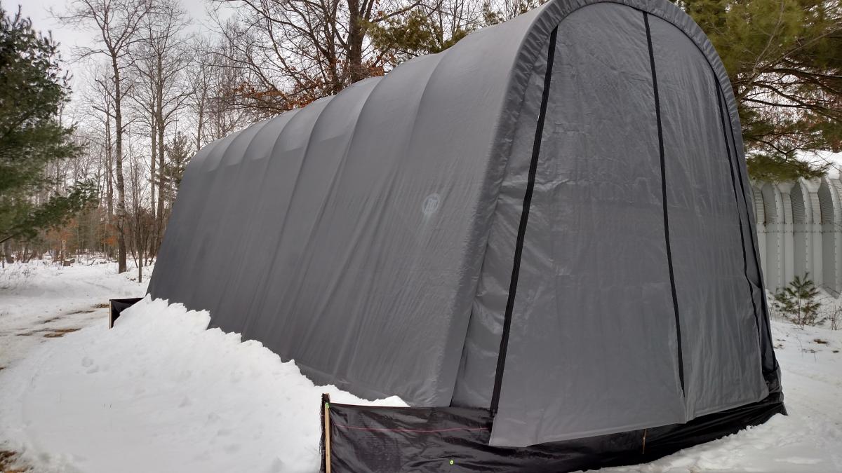 For full asking price of $13,000 I will include the portable shelter that I purchased new in 2012. It measures 10' wide 12' tall 30' long. I had to build this shelter up 18" for boat to fit with radar arch on but it's fully enclosed with boat inside. $12,500 obo without shelter.