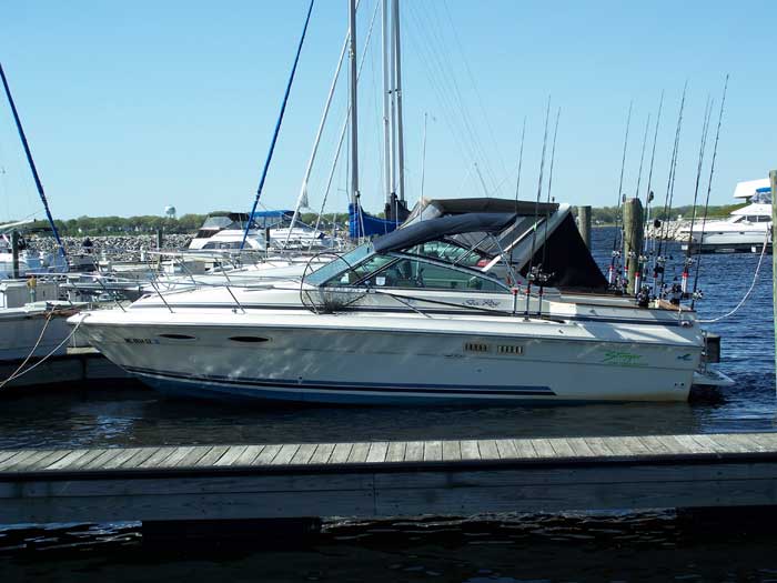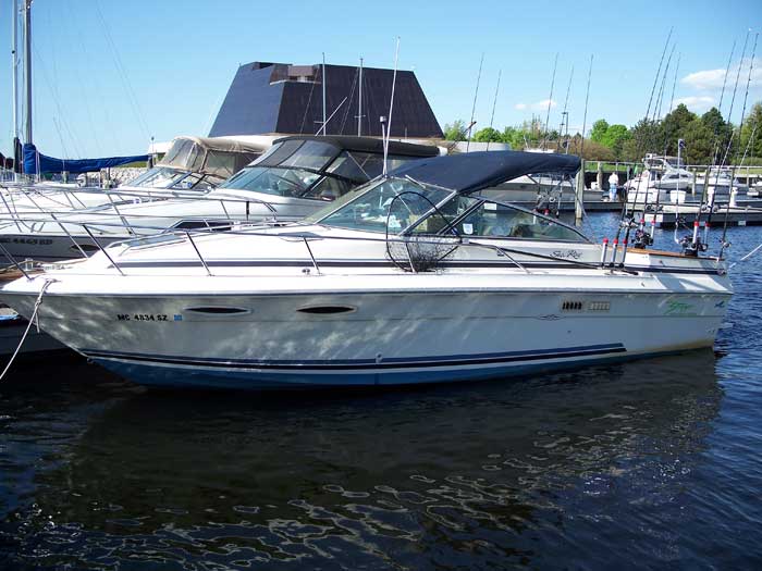 GLF Posted March 11, 2007 Posted March 11, 2007 I purchased it in the October of last year. I have not decided on a name for yet, but I am leaning towards GLF. I do not have any shots of it rigged. I will get plenty of them this summer. Its a Sea Ray 270 Amberjack. This is Sea Rays sport fishing model. G.L.F. is still in the process of being equipped. I hope to have everything mounted this weekend. Twin 4.3's will get me to the fish and back. My eyes below the water are a Lowrance LCX-111c. I have 3 Big Jon Pro Tournament down riggers, two Big Jon triple rod holders on pedestal bases for running inlines, and two Big Jon singles on the side for handling dipsey duties. I may add two more singles on the sides so I can run 4 dipsey's at a time. This is my first season with the boat. There has never been any salmon scale in the boat. There will be scales in the boat this season. Want list: Radar arch, radar, and autopilot.
