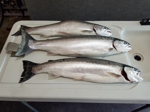 JVanderVennen Posted June 19, 2016 Posted June 19, 2016 First trip of the year aboard Tha Double V and happy to say everything went great. Motored north just south of Grand Haven and Fished from 9-11 am in 60- 70 fow on a east to west troll pattern and ended 3/3 with all steelhead. What worked was 4-5 color lead with mixed veggie and watermelon spoon and rigger went once at 35 down. 2