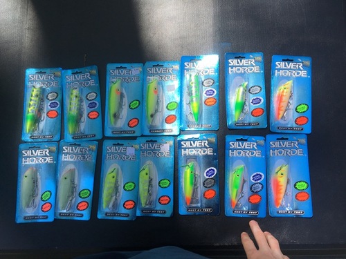 mrhookup Posted June 27, 2016 Posted June 27, 2016 Silver Horde plugs still new in package, some are custom colors. There are 14 in total and they are as follows: (2) Dreamsicle - Silver Horde #4 (2) Glow Red Head - Silver Hord #4 (2) Mixed Veggies Custom - Silver Horde #4 (2) Chartruese Lightning - Silver Horde #4 (1) Chrome Mud Lover - Ace Hi (2) Yellow Tail - Silver Horde #5 (2) Chartruese Chrome Mud Lover - Ace Hi (1) Chrome Mud Lover - Silver Horde #4 Price is $50, buyer pays shipping. Located in the Grand Rapids area but I'm often in Kalamazoo, St. Joseph, Grand Haven, and Southfield for work or fishing so could potentially meet up around one of those areas.