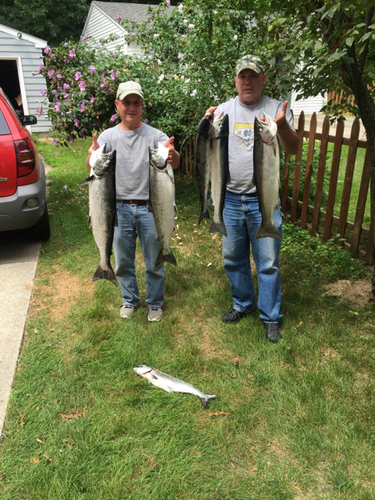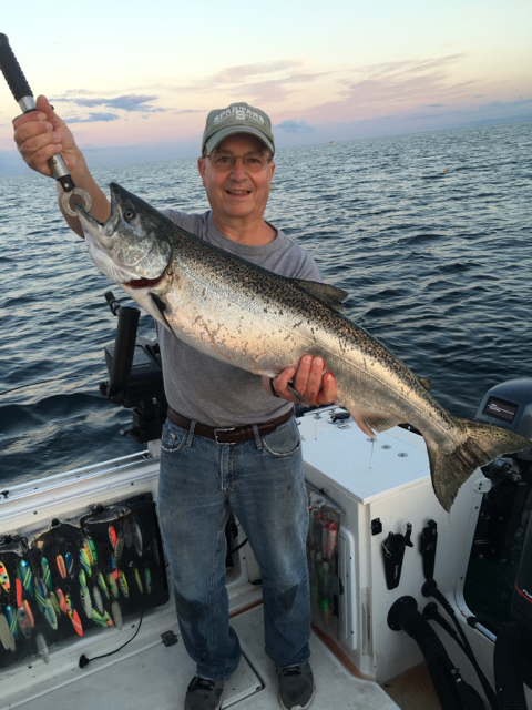 mrhookup Posted August 9, 2016 Posted August 9, 2016 Took dad and his buddy Tim out in Grand Haven on Sunday morning. It was nice to finally have a crew that could make an early start and it paid off big time. We dropped in a touch south of the pier heads in 55FOW on a north troll and were setting lines by 5:45am. By 7:30am we were 5/8 with 5 kings and 1 steelhead all in 50-60 FOW mostly straight out and a touch north. Then it died for us so we tried sliding out and working south in 80-90 FOW because it seemed from the radio chatter that fish were caught as deep as 110FOW while we were shallow. Never got em going again after that, we either weren't on the fish or they didn't like what we had to offer. Went 4 hours without a hit and then picked up a steelhead in 150FOW while making a troll deeper to see what we could find to finish the day 6/9 overall. Marked a lot of smaller bait in the top 30ft in 140-160 FOW so I imagine you could get into some good steelhead action out there running a program for them. No monsters today for us but solid fishing. Here's what worked: 50' copper - Nitro Blue Dolphin Stingray 75' copper - Magnum Happee Meal High Diver out 60' - Magnum Flounder Pounder 200' copper - Magnum Dreamweaver blue/green Dolphin Sent from my iPhone using Great Lakes Fisherman mobile app 4