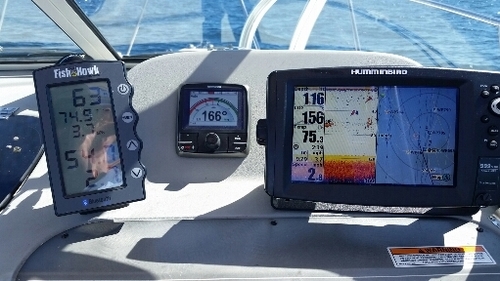 littleboat Posted August 23, 2016 Posted August 23, 2016 Fished 2-7pm, 1 for 4, 11# king. Two rips and a lost approx 6# steelhead in 83 fow on dipsy w/gasoline meat rig in back of boat while netting. 1/1 on DR with speckled dick meat rig, in109fow, 73ft down 25 bk. Nw troll sog 2.9, temp at ball 57.5 (king) No bites on jplugs, spoons or flies. Some sample screen shots today. Fish big marks were in 110 ft depth. Lots of them. Waves were 2-3ft. Some great time with a grandson. Never fished before. 3