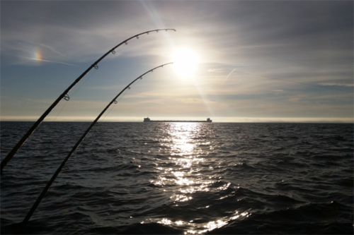 Martin1950 Posted September 10, 2016 Posted September 10, 2016 After another 0530hr launch, we enjoyed a pleasant 3hr boat ride dragging rattling “J’s” on CU. and spoons on DR’s. Started marking fish in 90fow so we turned North toward the fleet of bigger boats. One of which was this tanker headed South so we changed our track and headed West to get out of the way. Once back in 90fow we tagged this salmon on a #4 rattling J on 150x30# CU, he was one hungry fish. More arches but no bites so we headed in. Hit our 2nd. fish in 70fow on a Mag. Grn. Dolphin down 45ft. What the Hell is a Sheephead doing that far out? That 12# pound rascal went back in the water. Eleanor didn’t like that bumpy water and neither did my back but I’ll be ready the next time the lake is quiet. Hopefully this heat will end and I can get out in the evening. Martin 2