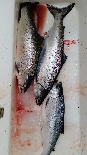 5 for 8, 3 kings, 2 laketrout  (released). Lost nice steelhead in the netting process also. One of the laketrouts was approx 16#, other was 3#. Kings were 3-4# each.