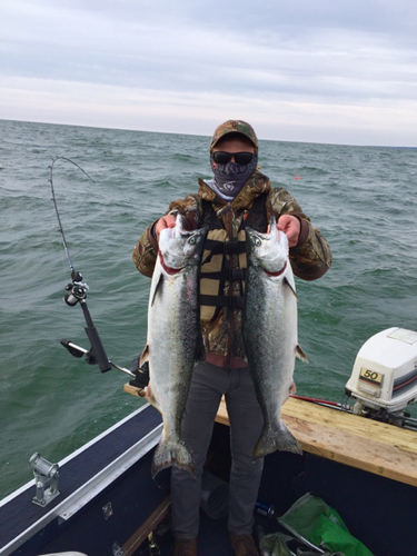 Copilottruman Posted May 4, 2017 Posted May 4, 2017 Couldn't get a crew for the morning shift but found someone willing to take a PM run. Launched around 3ish and found ourselves going thru the pier heads in 1-2 foot rollers. Safe in my 16' er but not very fun. Started in 40 fow straight out on a north troll into the waves. Immediately took a small shaker king putting out the 225 cu. kept going out until 80 fow but lost most of the marks around 60. turned back in and hit a large n feisty laker in 50 going south. Trolled in 40-50 fow with plenty of marks going south. We took 4 more kings. 2 solid fish and 2 smaller. No pattern on spoon color or size or depth. Water temp was 48. Sent from my iPhone using Great Lakes Fisherman mobile app 4
