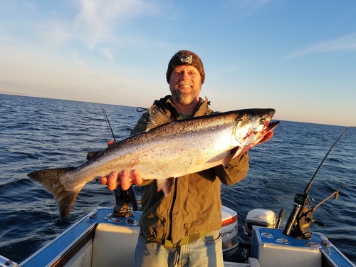 Special K Posted May 9, 2017 Posted May 9, 2017 Muskegon 5/9 am Fished the mud this morning with Doug on the Floating Holiday. Went 11-14 All kings. (11th fish came pulling lines and was released) Fished the pier heads out to 60fow. Best bait was a uv stinger jordo on a 6 color. Rigger down 45 with a yellow flounder pounder rv, stinger uv mixedveggies on a rigger down 40, stinger uv mixed veggies on a 200cu, stinger uv yager bomb on a 125cu all took fish. 10